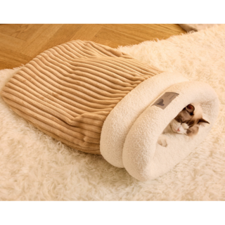 차온스 고양이 침낭 숨숨집 겨울 강아지 이불 반려동물, 갈색, 1개, free