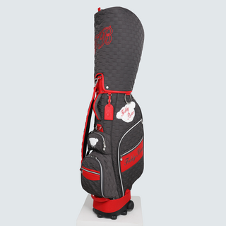 테디베어 로고 자수 엠보 트롤리 캐디백, 레드